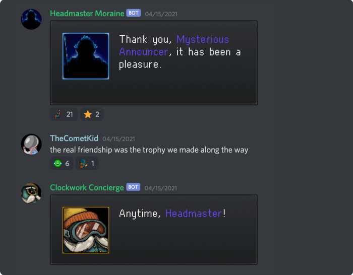 For moderation, Sabotage built The Clockwork Concierge, a custom app modeled after a boss from The Messenger. Built to enforce a strict three-strikes-and-you’re-out policy, the Concierge was ruthless. No judgment calls, no case-by-case debates, no waking up at 3 a.m. wondering if a ban triggered an existential crisis. By delegating the “bad cop” role to a script, Sabotage freed volunteer moderators to focus on positive interactions—the reason (most of them) signed up.